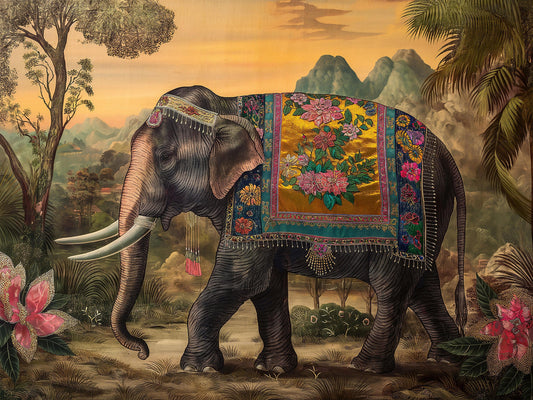 Vintage Decorated Indian Elephant Wallpaper Mural. #6990