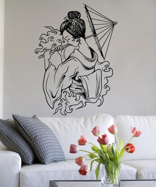 Vinyl Wall Decal Sticker Water Geisha With Umbrella #1502