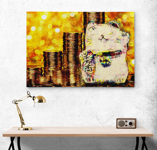 Lucky Cat Art Canvas for Prosperity and Good Fortune. Beckoning Cat, Fortune Cat Canvas. #C120