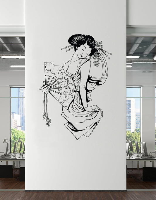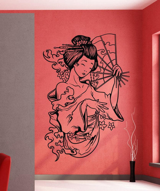 Japanese Geisha w/ Fan Vinyl Wall Decal Sticker. #357