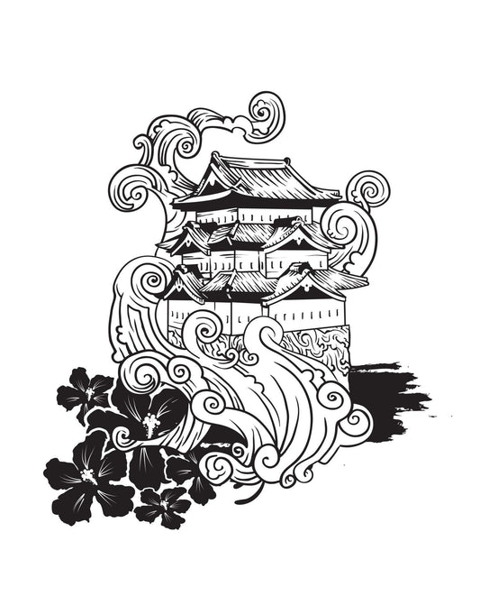 Traditional Japanese Building Over Cliff Wall Decal. #342