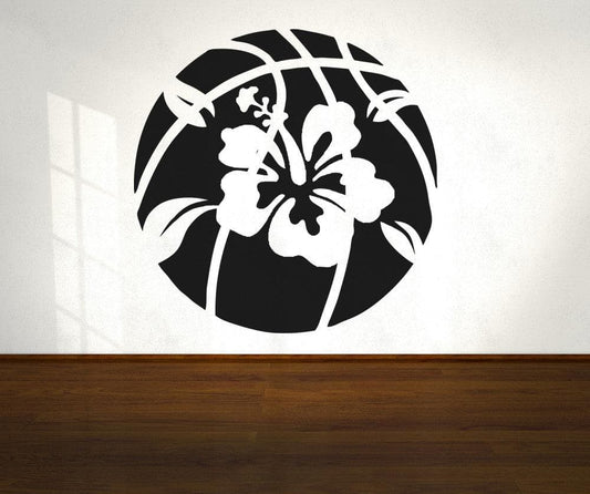Vinyl Wall Decal Sticker Basketball with Hibiscus #OS_AA513