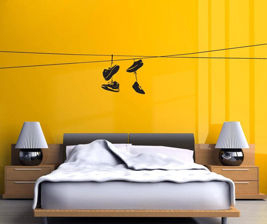 Shoes Thrown On Wire Vinyl Wall Art Decal Sticker NYC / Urban / Brooklyn Theme Decor. Kid's Room. #1529