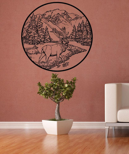 Vinyl Wall Decal Sticker River Scenery With Deer #5282