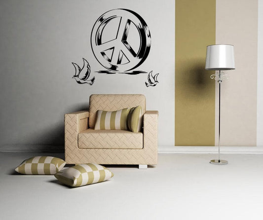 Vinyl Wall Decal Sticker Peace Sign and Doves #1110