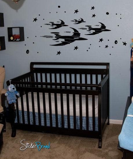 Vinyl Wall Decal Sticker Kids Room Spaceship Stars #205