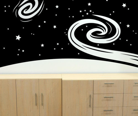 Galaxy wall decals instantly create a stunning cosmic ambiance perfect for bedrooms, playrooms, or living areas.