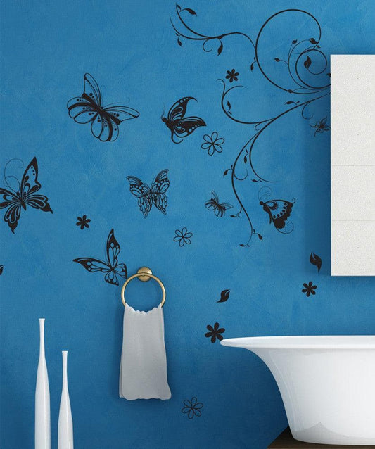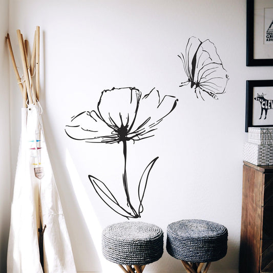 Flower Wall Decal Sticker. Butterfly Wall Decor, Nursery Floral Decor. #6693