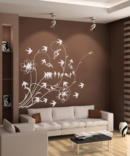 Birds flying Around Flowers Vines Vinyl Wall Decal Sticker #1001