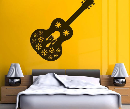 Vinyl Wall Decal Sticker Floral Guitar #OS_MB344