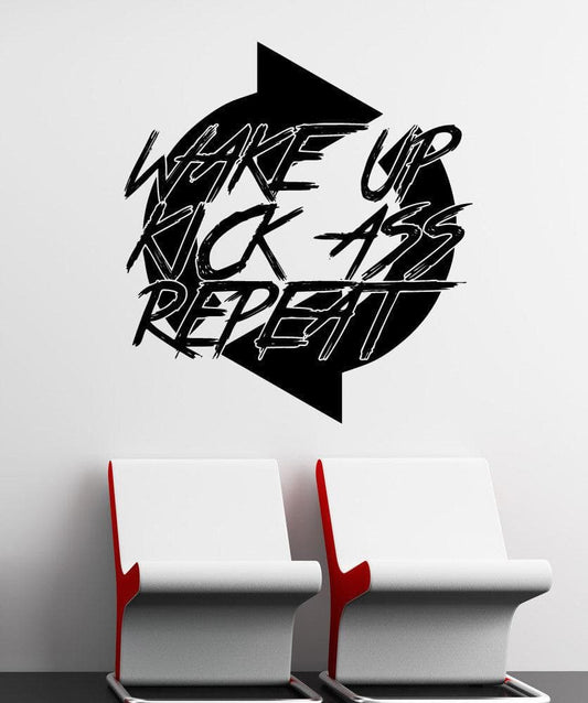 Wake Up, Kick Ass, Repeat Motivational Quote Wall Decal. #5455