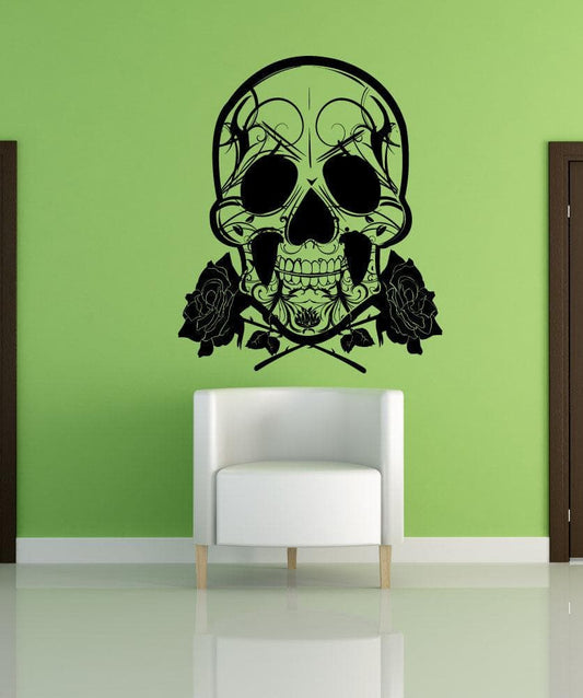 Skull and Roses Vinyl Wall Decal Sticker. #1167