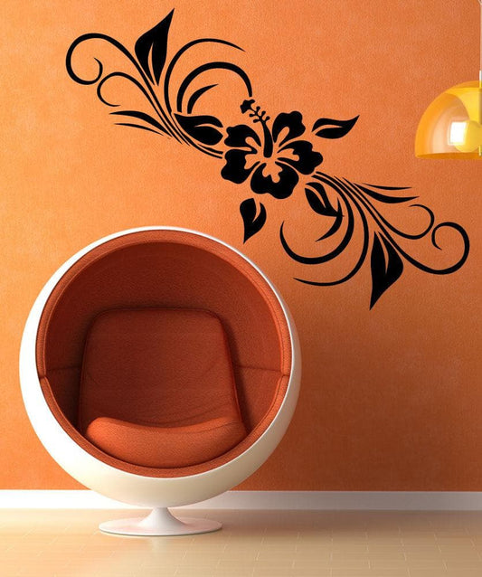 Flower Wall Decal Sticker Swirly Hibiscus Floral Decal. #OS_AA377