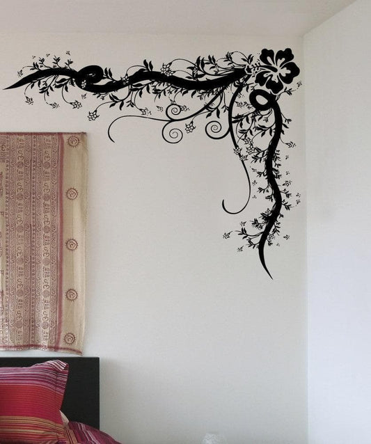 Vinyl Wall Decal Sticker Hibiscus Corner Vine #5328