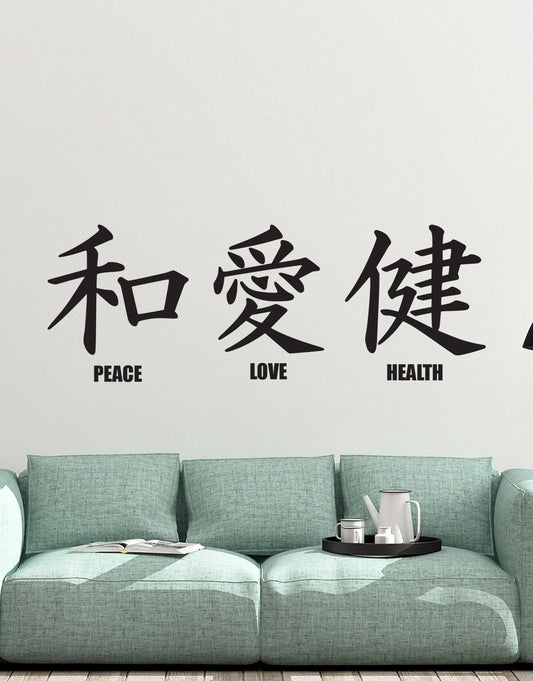 Japanese Kanji Lettering: Peace, Love, Health Wall Decal Sticker. #244