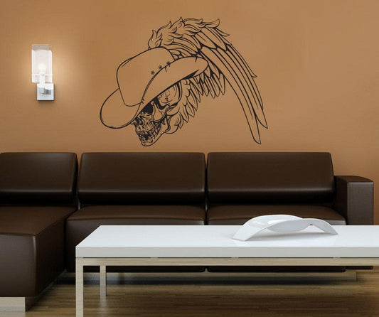Vinyl Wall Decal Sticker Cowboy Skull #1252