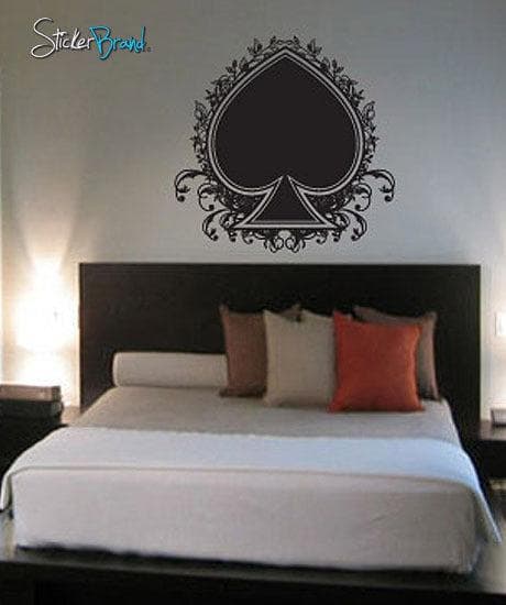 Vinyl Wall Decal Sticker Playing Cards Spade with Floral Swirls #336