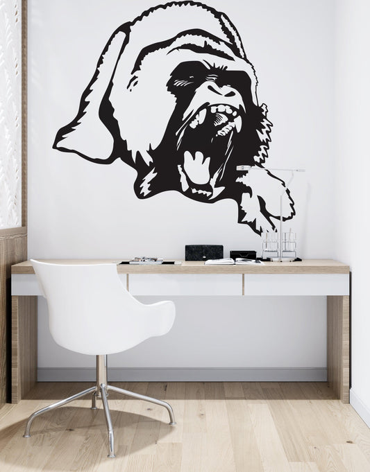 Large Gorilla Face Growling Vinyl Wall Decal Sticker. #461