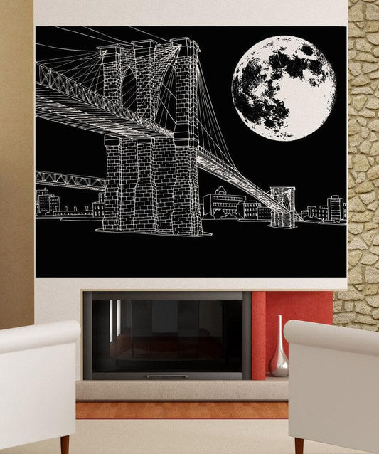 Brooklyn Bridge Night Scene Wall Decal. (Die-cut) #5214