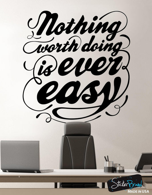 Nothing Worth Doing is Ever Easy Motivational Quote Wall Decal Sticker #6103