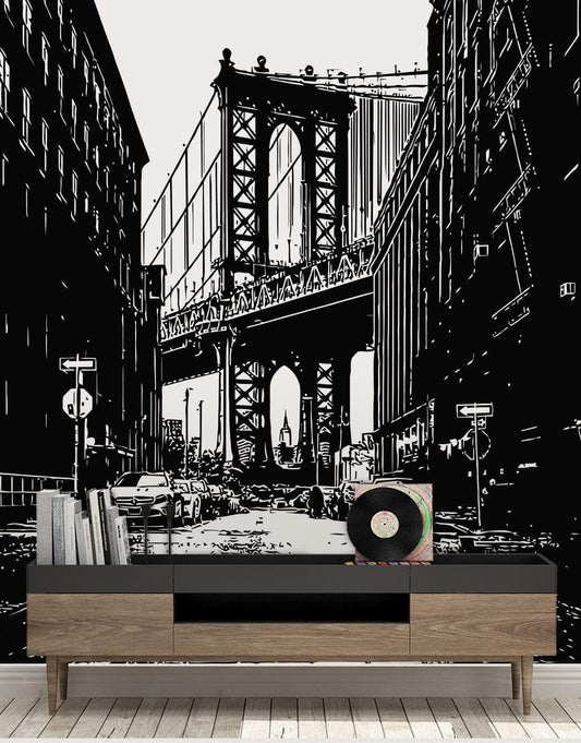 Black and White Brooklyn Bridge Wallpaper Mural. New York City Theme Decor. #6798