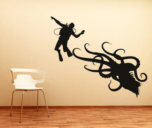 Vinyl Wall Decal Sticker Scuba Diver and Octopus #OS_AA746