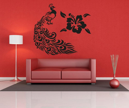 Vinyl Wall Decal Sticker Peacock and Hawaiian Flower #OS_AA281