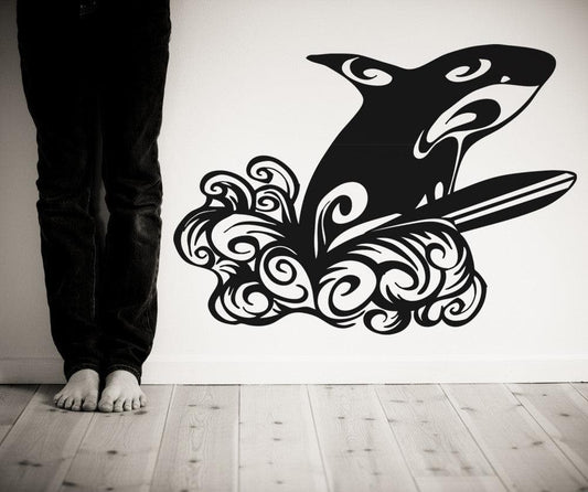 Vinyl Wall Decal Sticker Whale Surfing #OS_AA1232