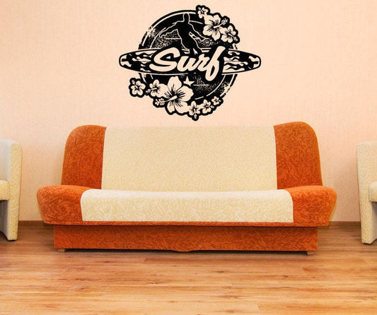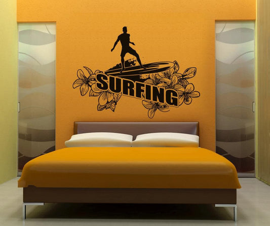 Vinyl Wall Decal Sticker Floral Surfing #OS_AA1234