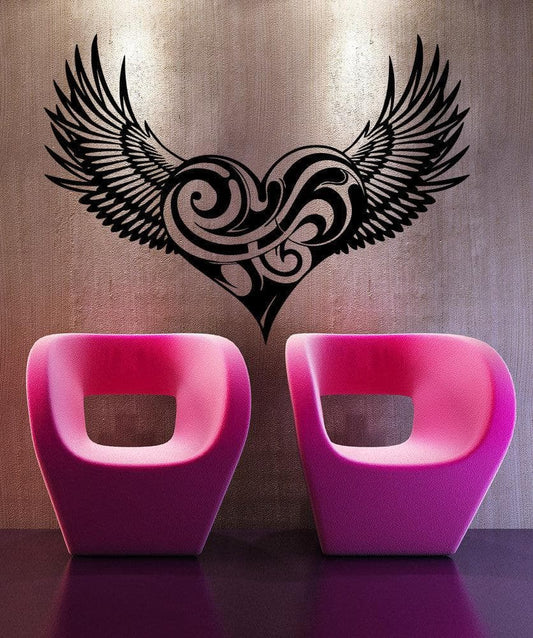 Swirly Heart with Wings Vinyl Wall Decal #5543