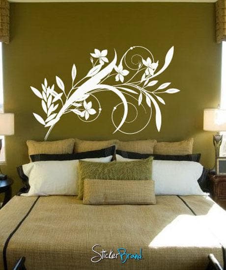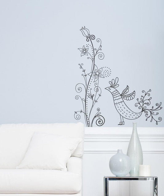 Vinyl Wall Decal Sticker Flower Bird Swirl #1005