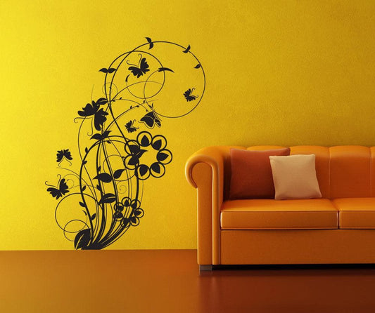 Vinyl Wall Decal Sticker Flower Butterfly Swirl #1011