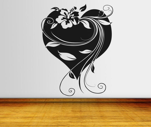 Vinyl Wall Decal Sticker Hawaiian Flower with Heart and Vines #OS_AA361
