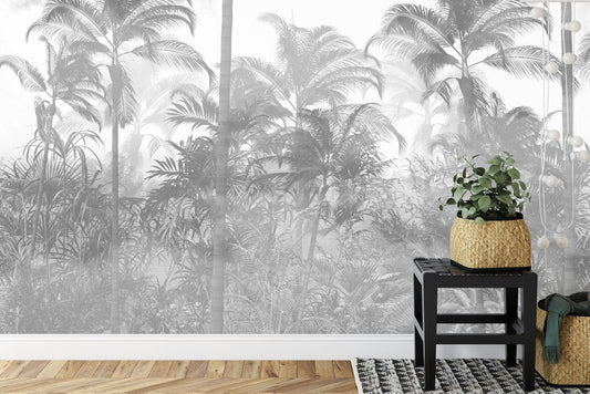 Black and White Tropical Jungle Forest Palm Trees Wallpaper Mural. #FT-448495
