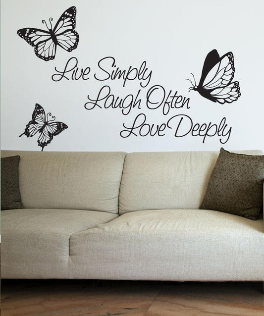 Inspirational Quote: "Live Simply, Laugh Often, Love Deeply" Vinyl Wall Decal Sticker. #1166