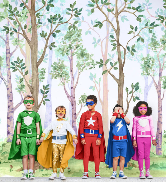 Colorful Nursery Woodland Forest Wallpaper. Watercolor Birch Tree Forest Wall Mural. #6527