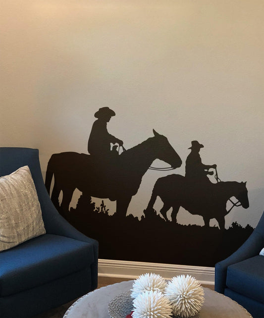 Cowboys Riding into Sunset Wall Decal Sticker. #OS_AA431