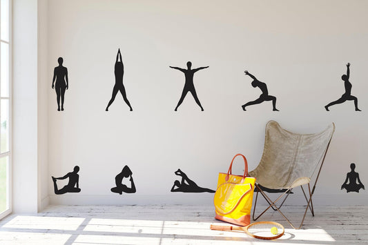 10 Yoga Poses Silhouette Position Wall Decal. Great for Yoga Studio or Home. #267