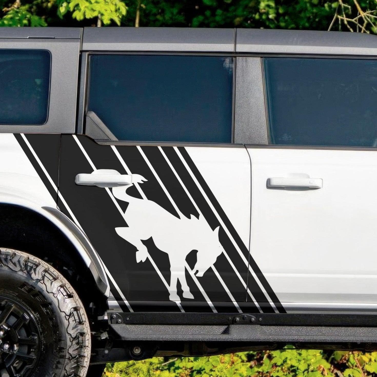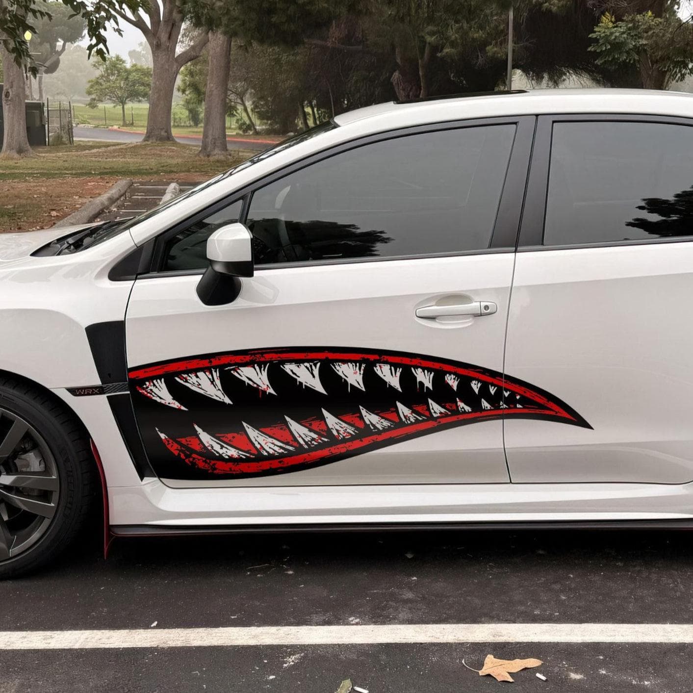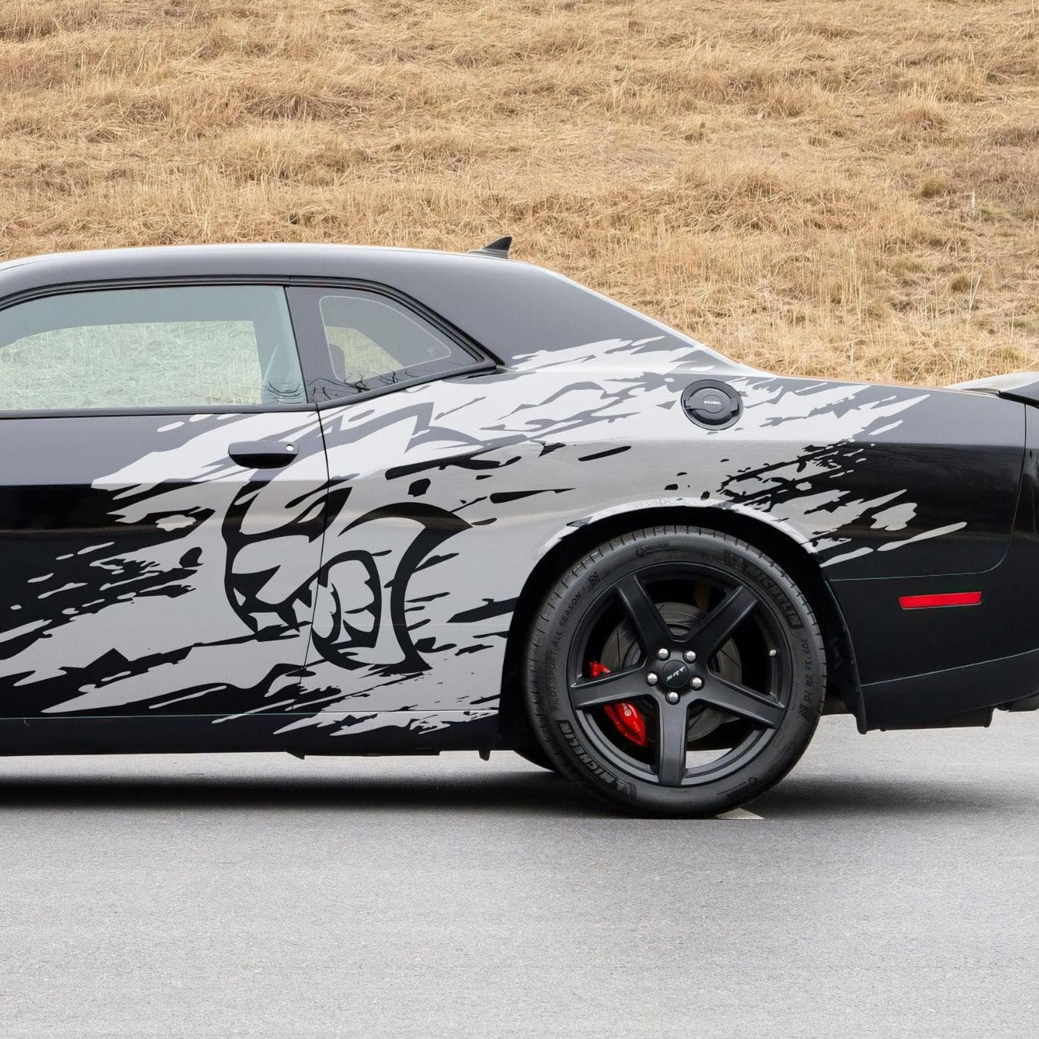 Most of our car graphic decals are designed as universal fits, which means some trimming will be required during installation. You may need to trim around doors, fenders, and other features of your vehicle to achieve the best fit.