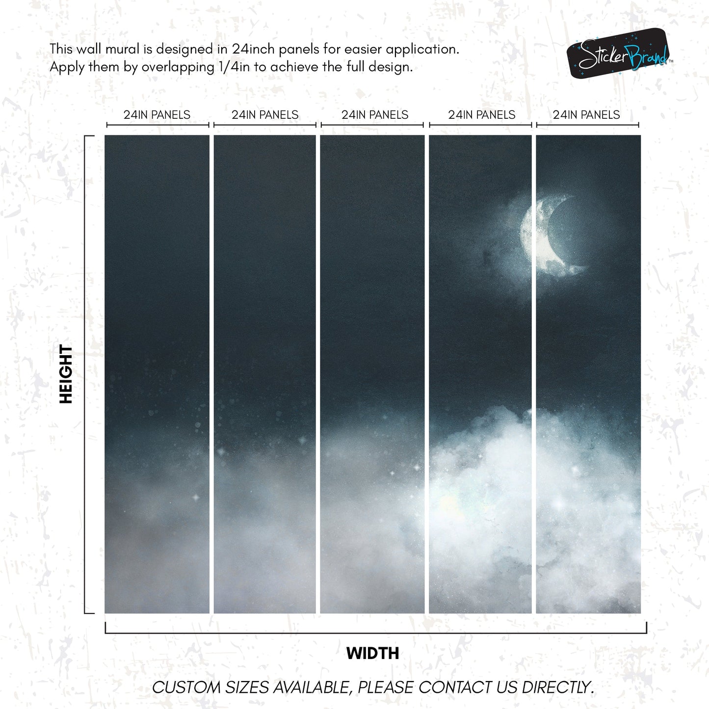 - Abstract grunge style design of foggy night sky over crescent moon light.