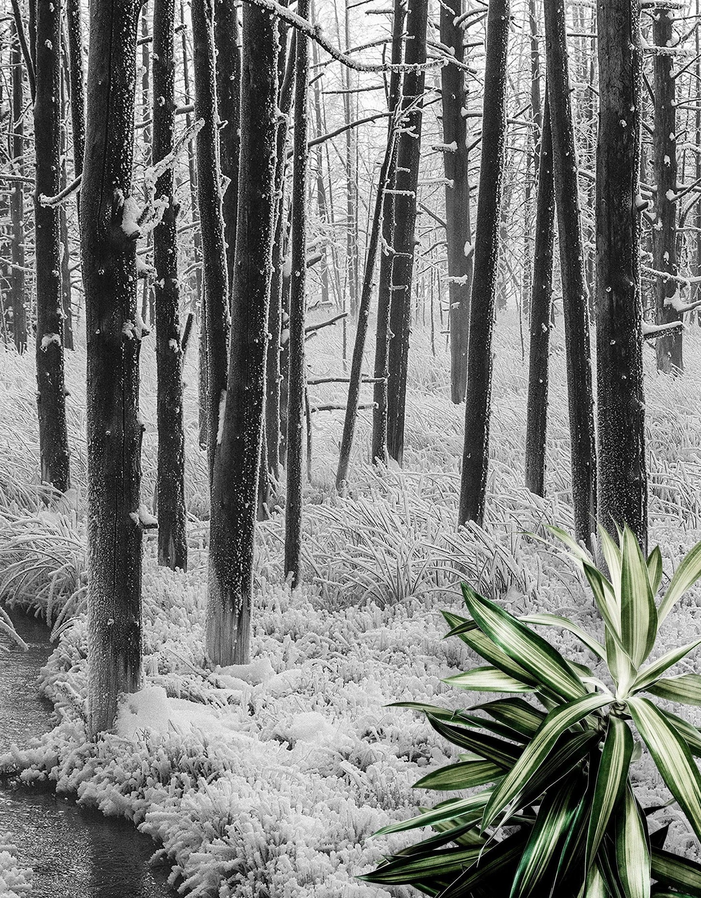 - Black and White Photo of Sunrise at Tangled Creek Falls.