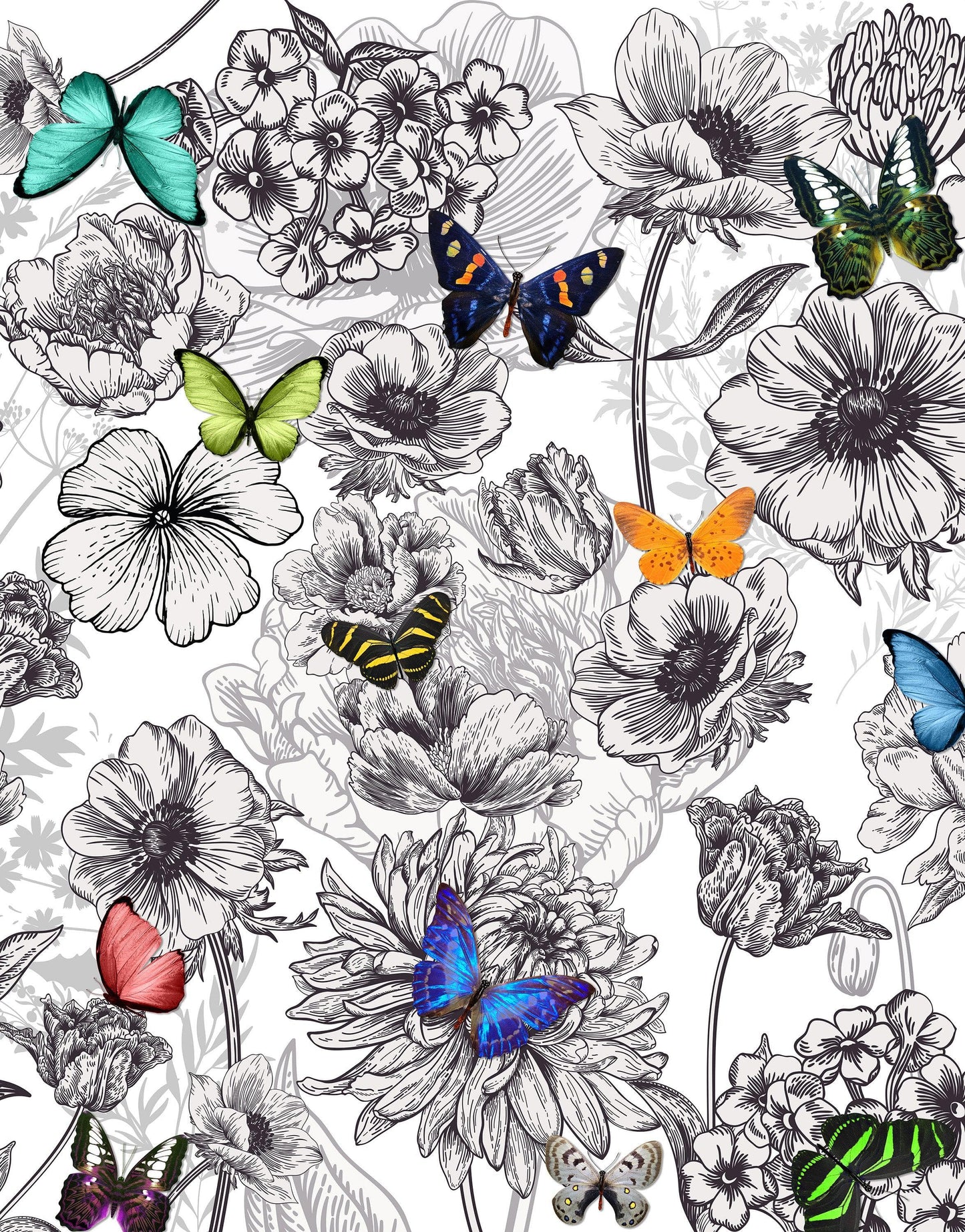 - Bring nature into your home with this beautifully drawn floral garden with color butterflies.