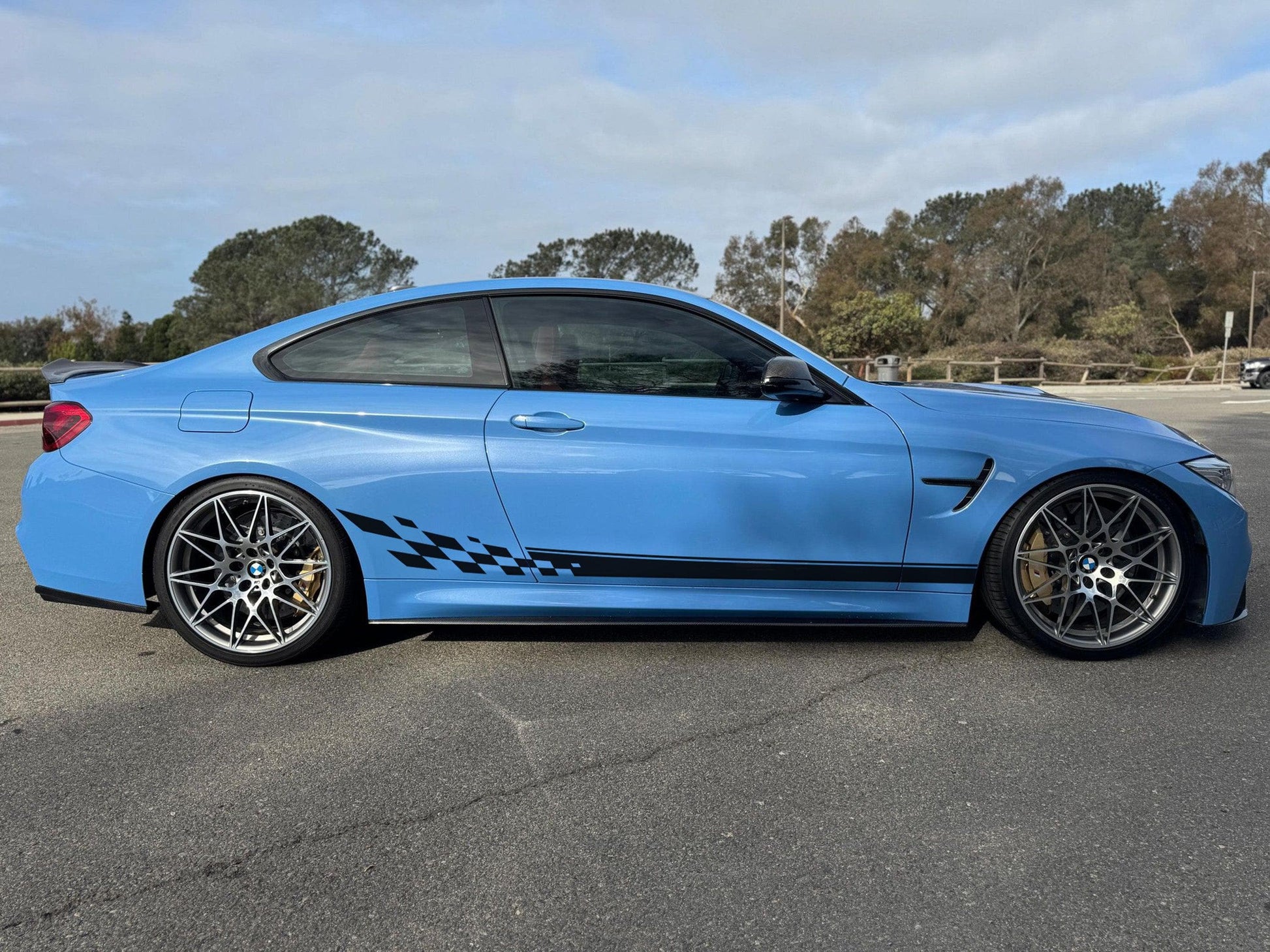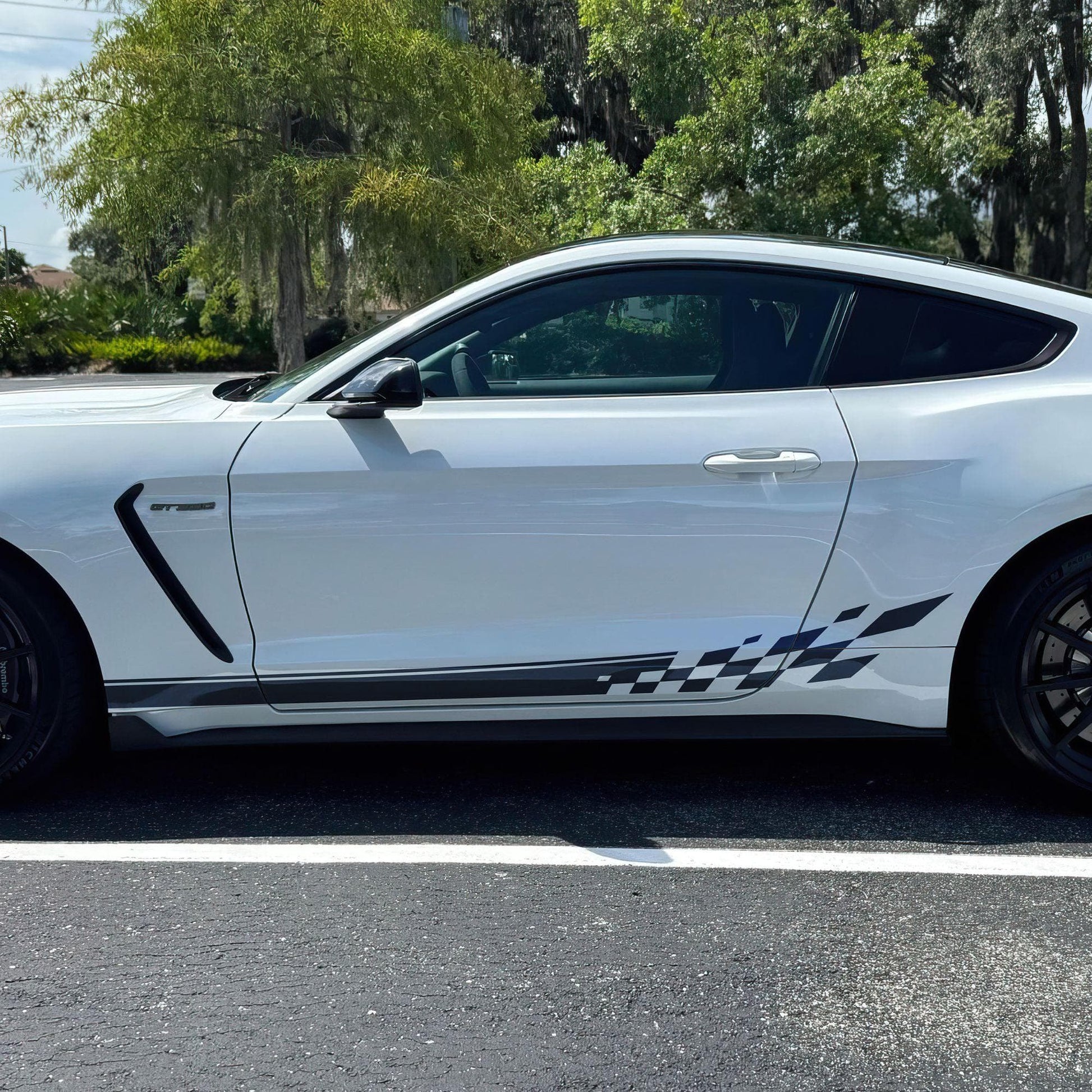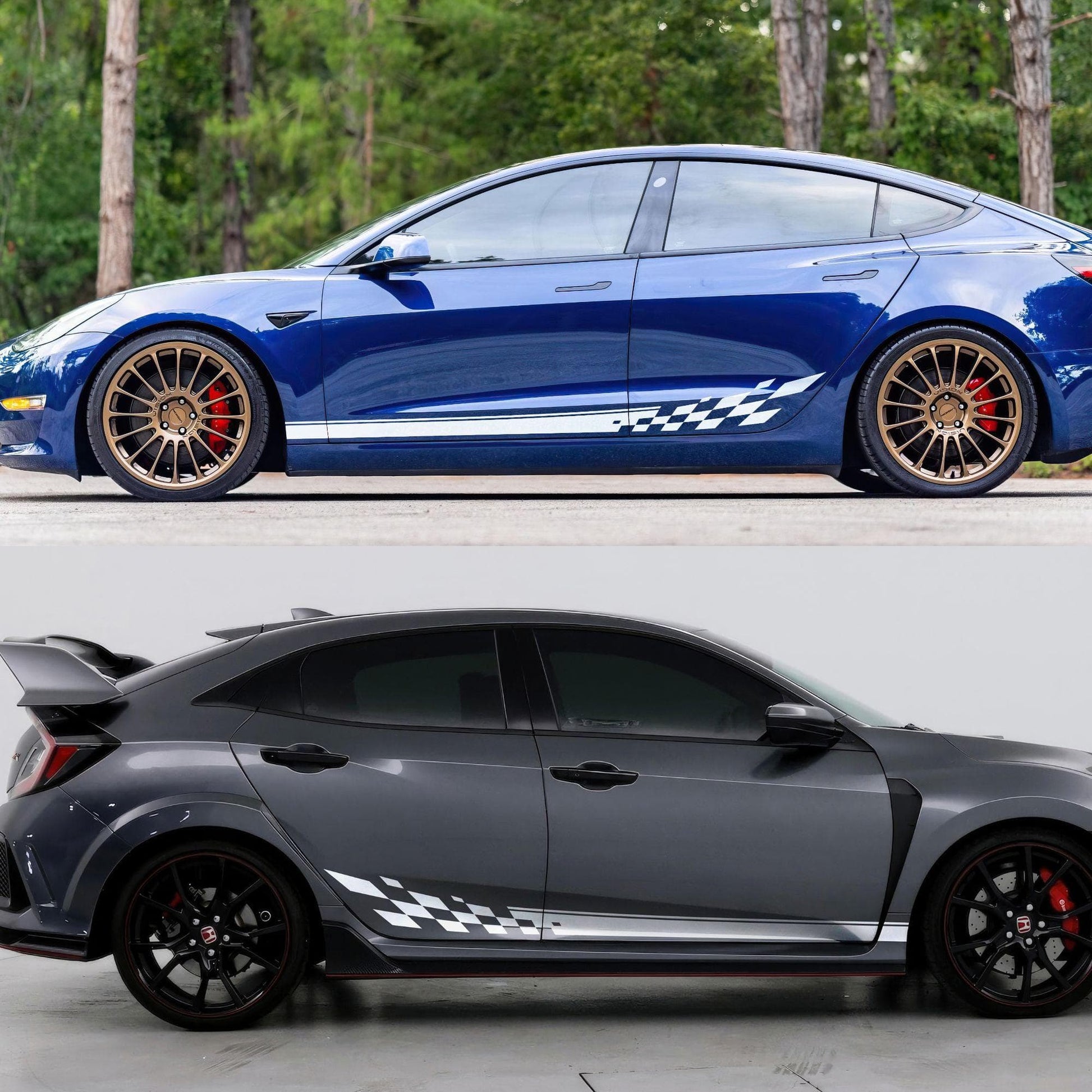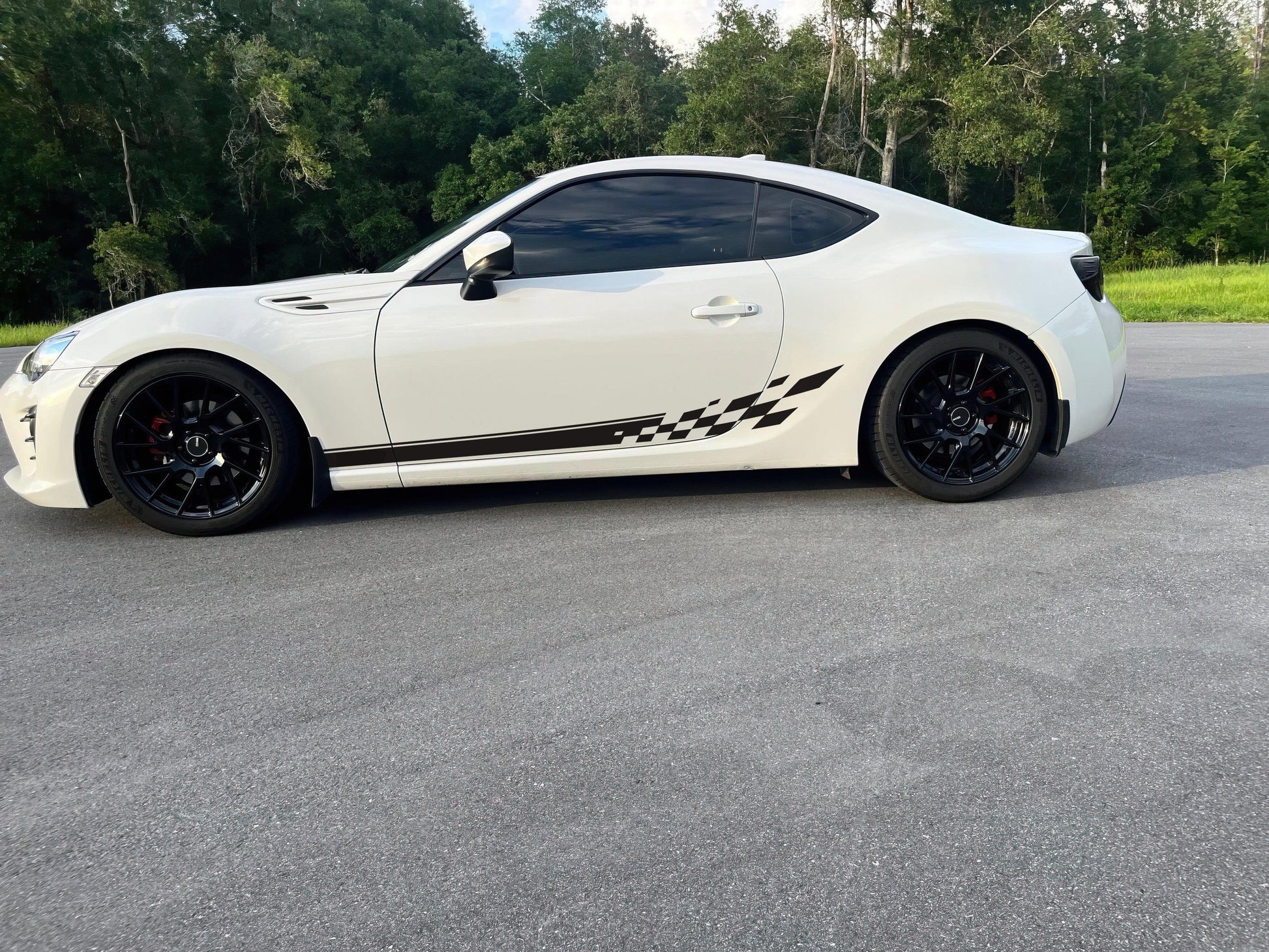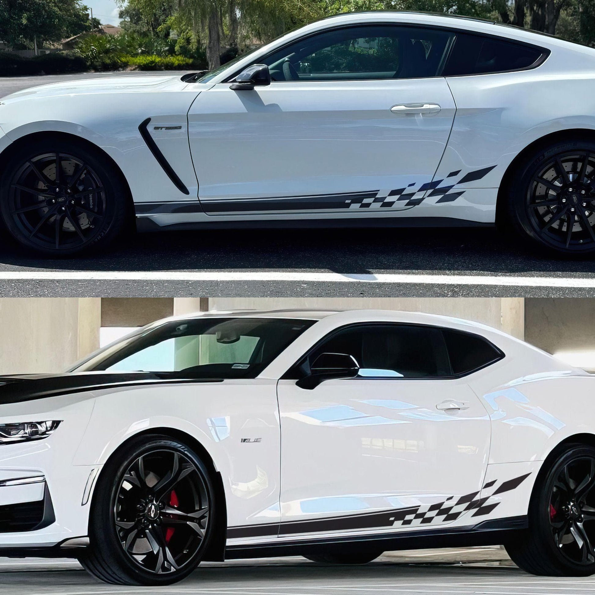 Most of our car graphic decals are designed as universal fits, which means some trimming will be required during installation. You may need to trim around doors, fenders, and other features of your vehicle to achieve the best fit.