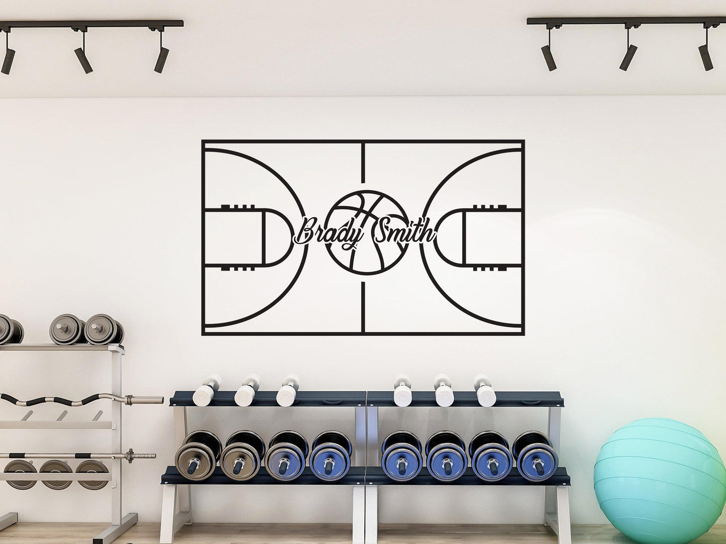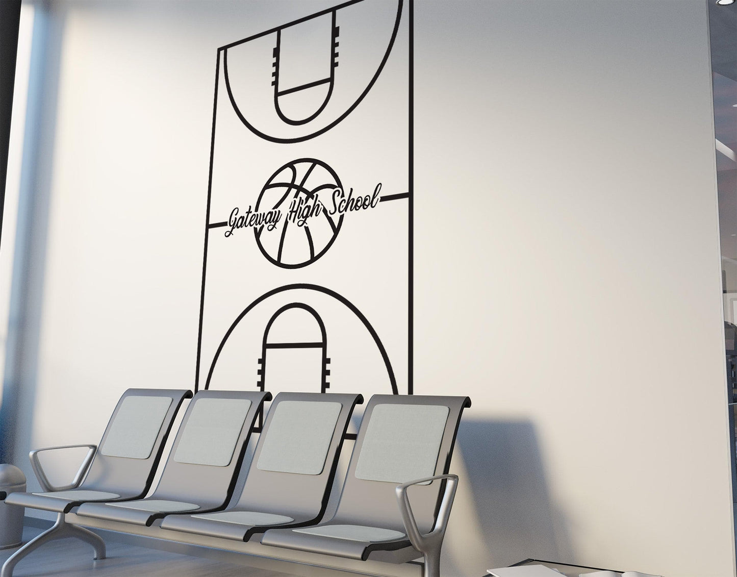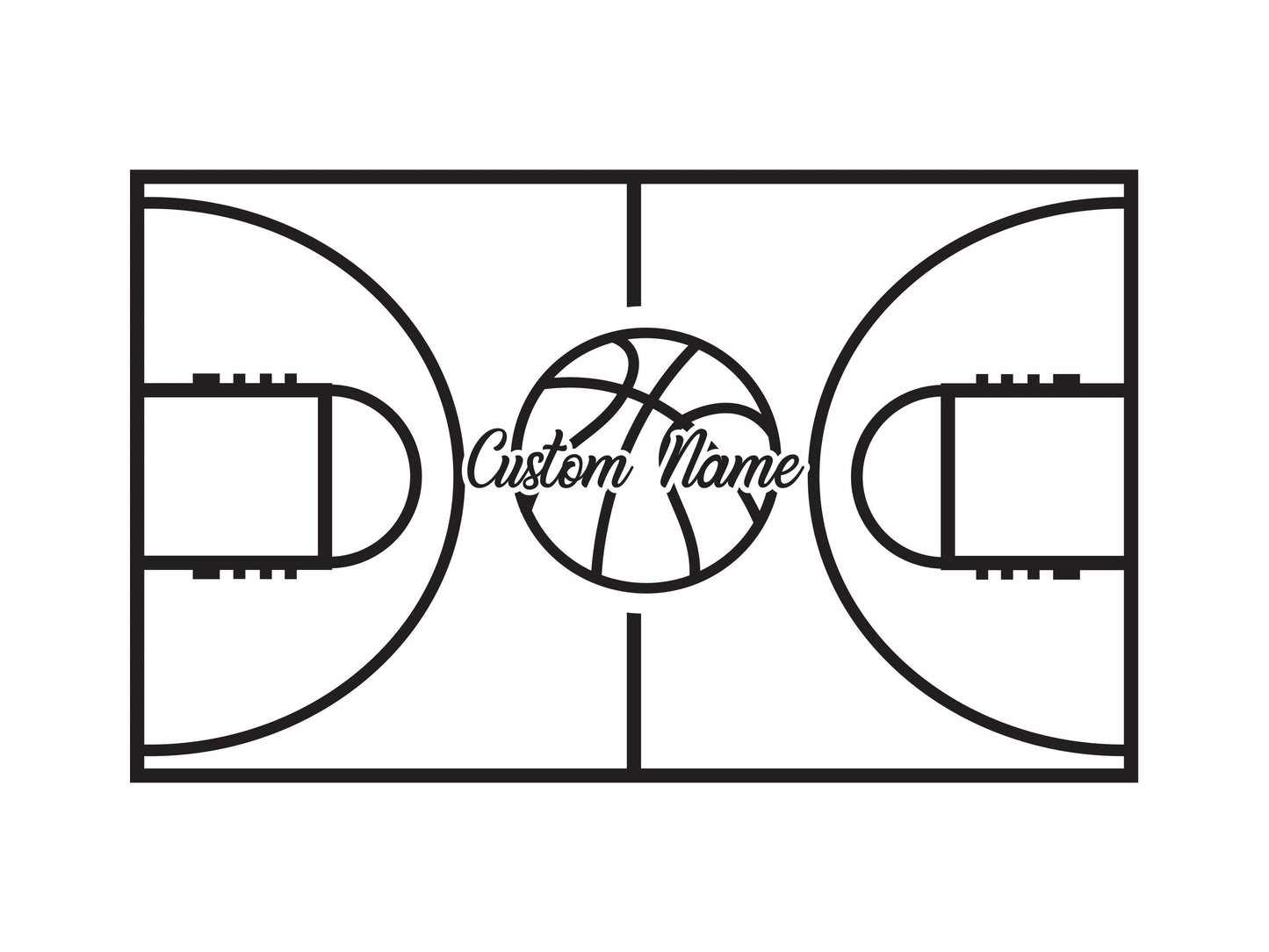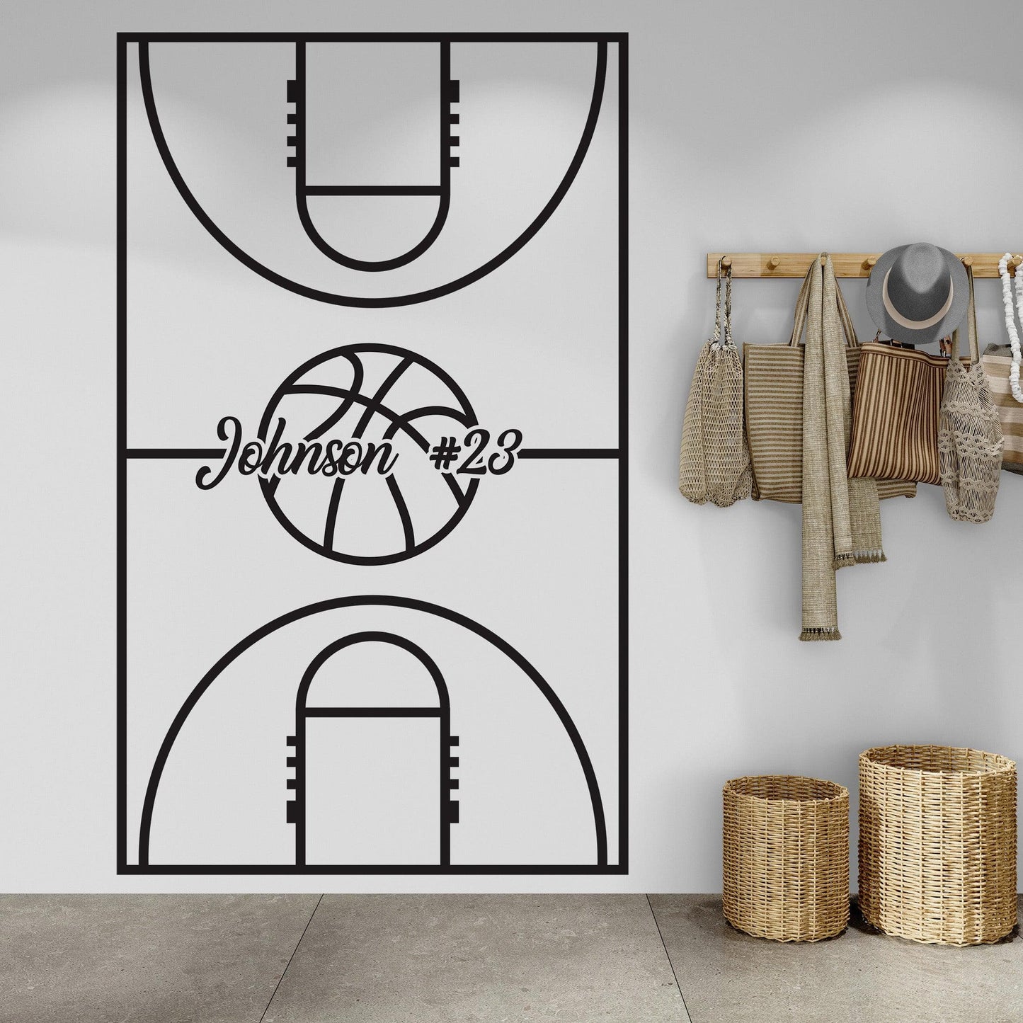 Custom Name on a Basketball Court Wall Decal. You provide the name and we will custom make this decal to fit your needs. Great for the basketball fan in the home.