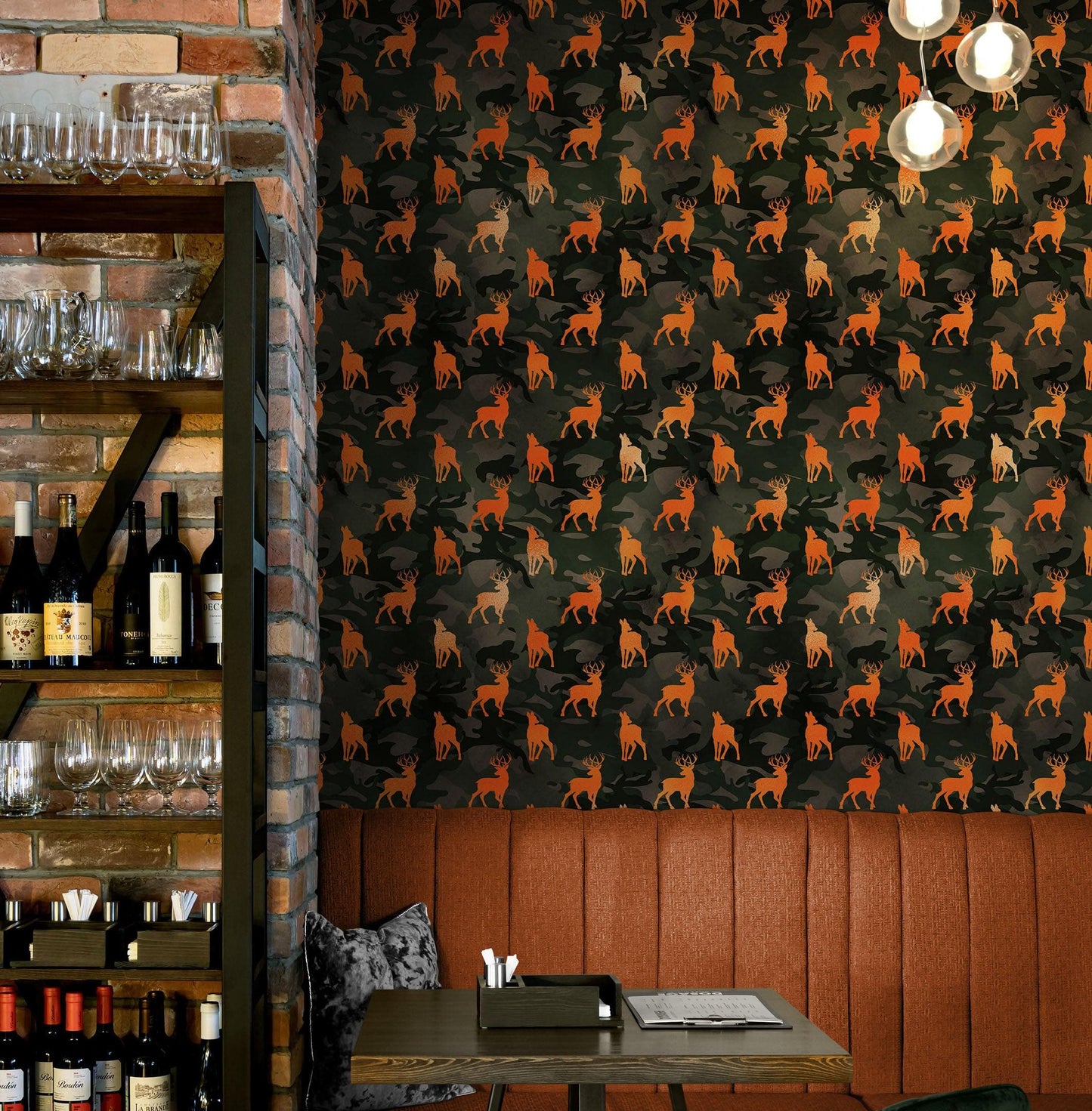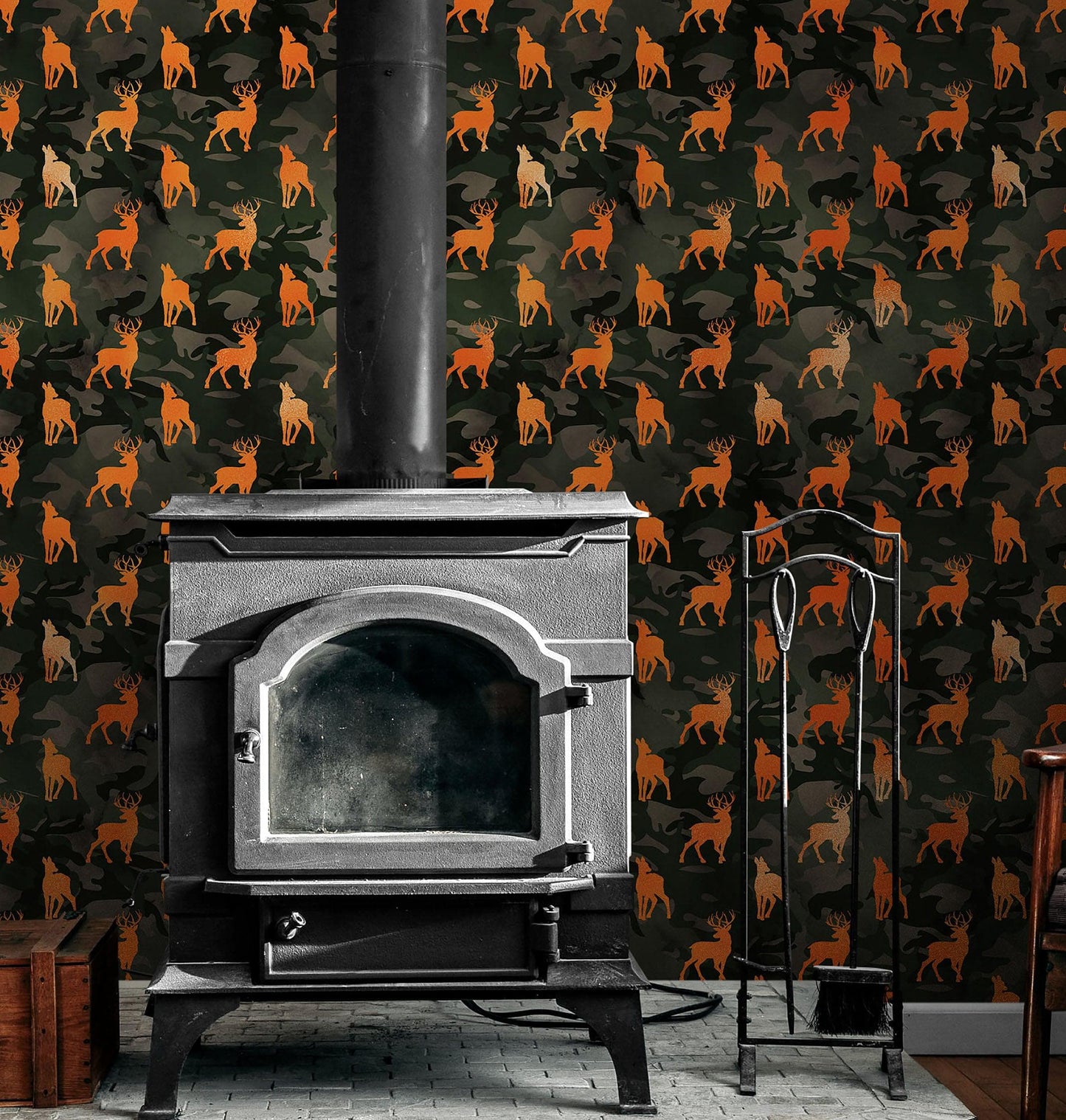 - Wildlife camouflage pattern with deer silhouettes.