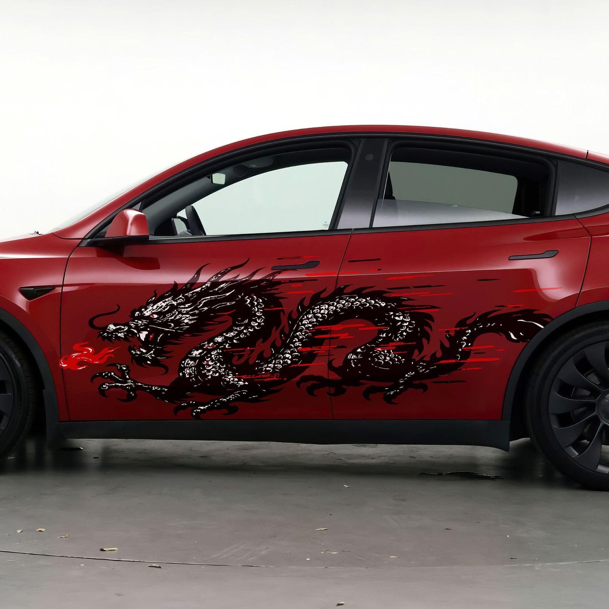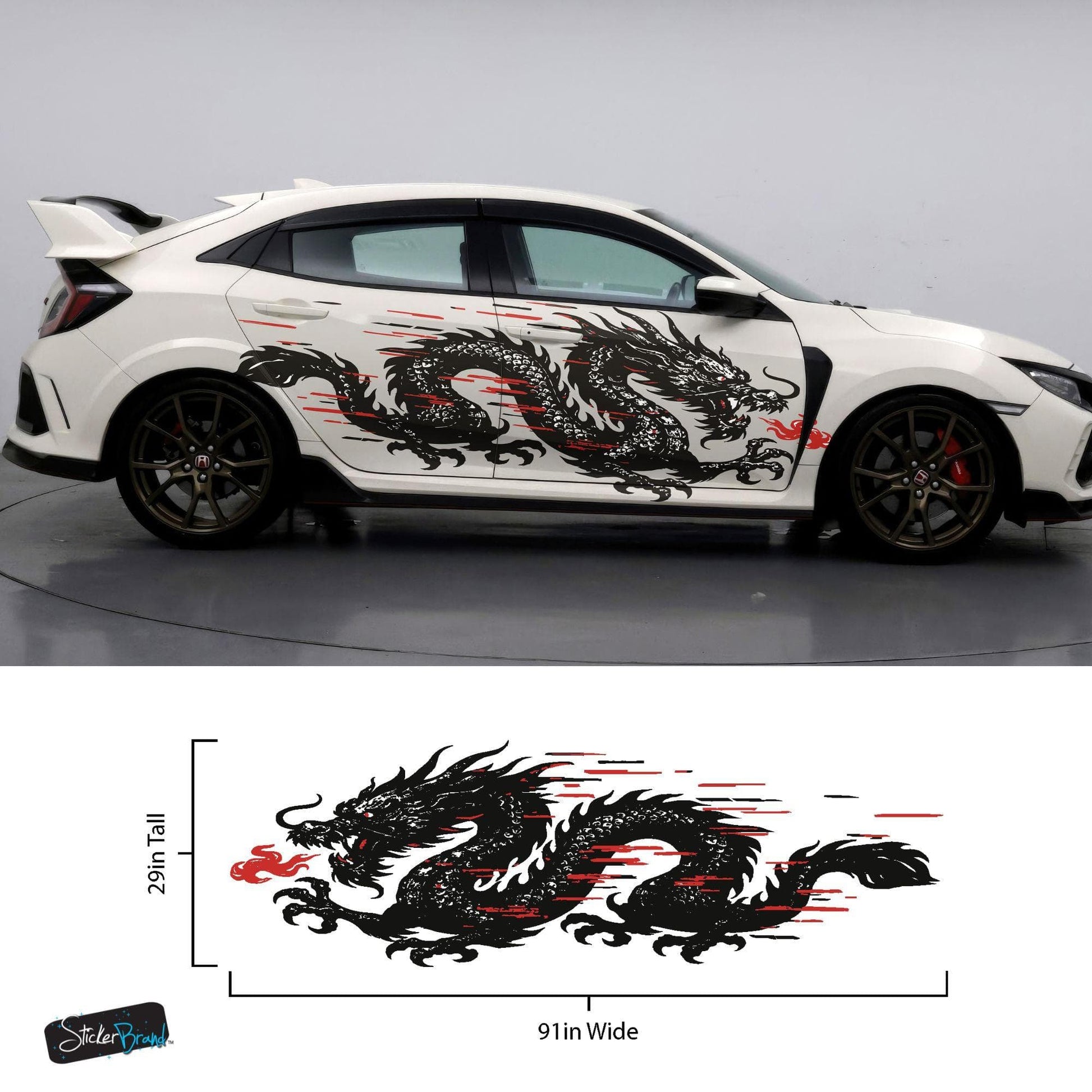 Most of our car graphic decals are designed as universal fits, which means some trimming will be required during installation. You may need to trim around doors, fenders, and other features of your vehicle to achieve the best fit.