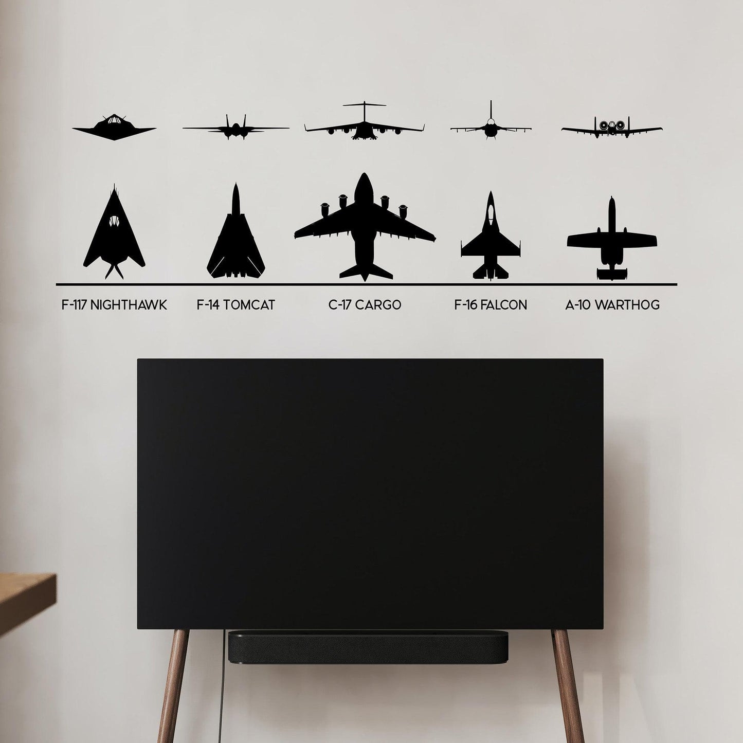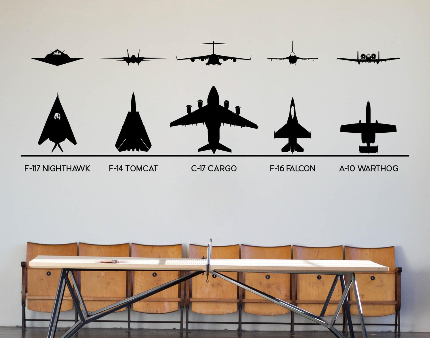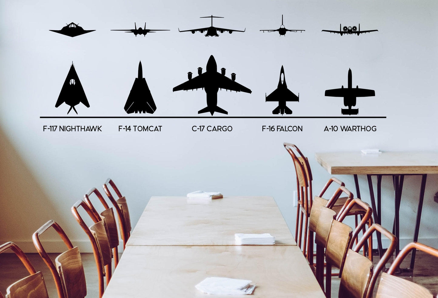F-117, F-14, F-16, C-17, A-10 Military Fighter Jets Wall Decal Stickers. #6644