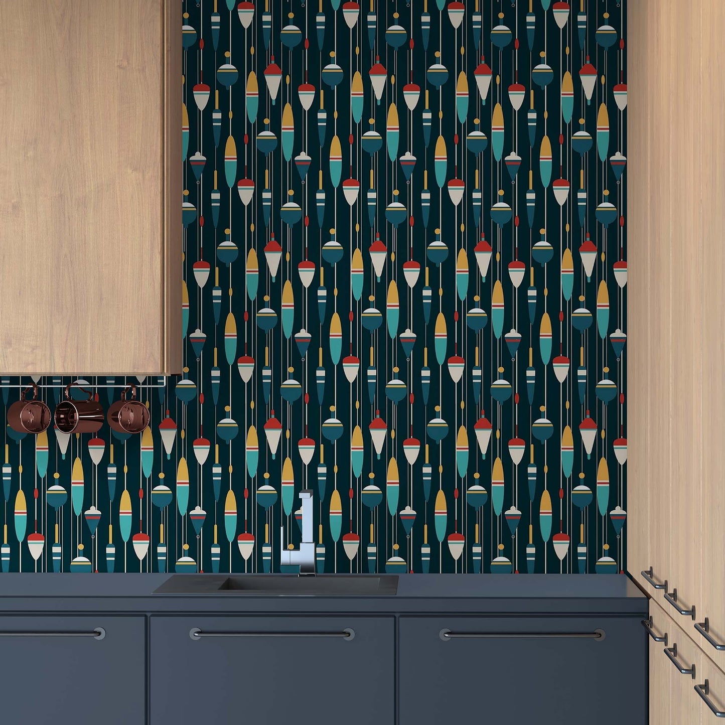 - Great Wall decor for any fisherman in the home. Depicted in this wallpaper design are colorful fishing floaters, corks and bobbers.