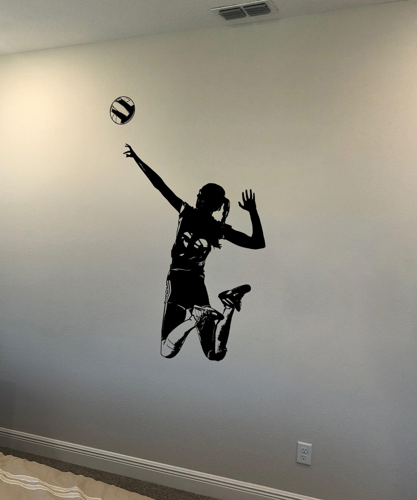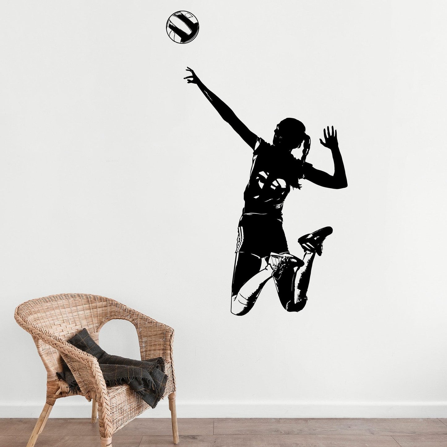 - Serve up inspiration with our volleyball girl wall decal sticker. Perfect for the girl's bedroom, sport's bar, game room decor, locker room or any room.