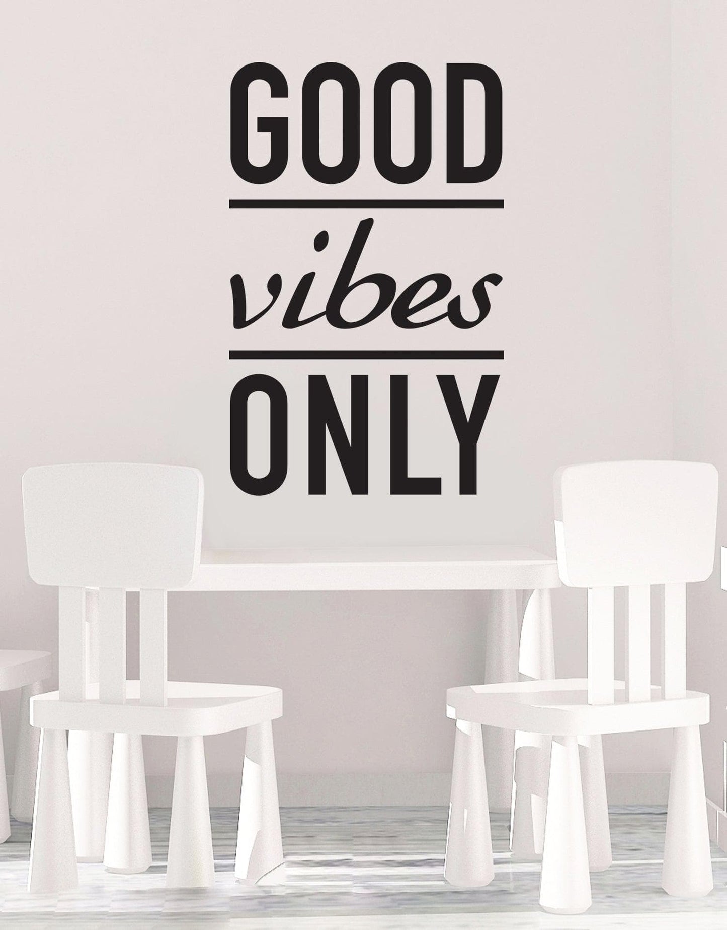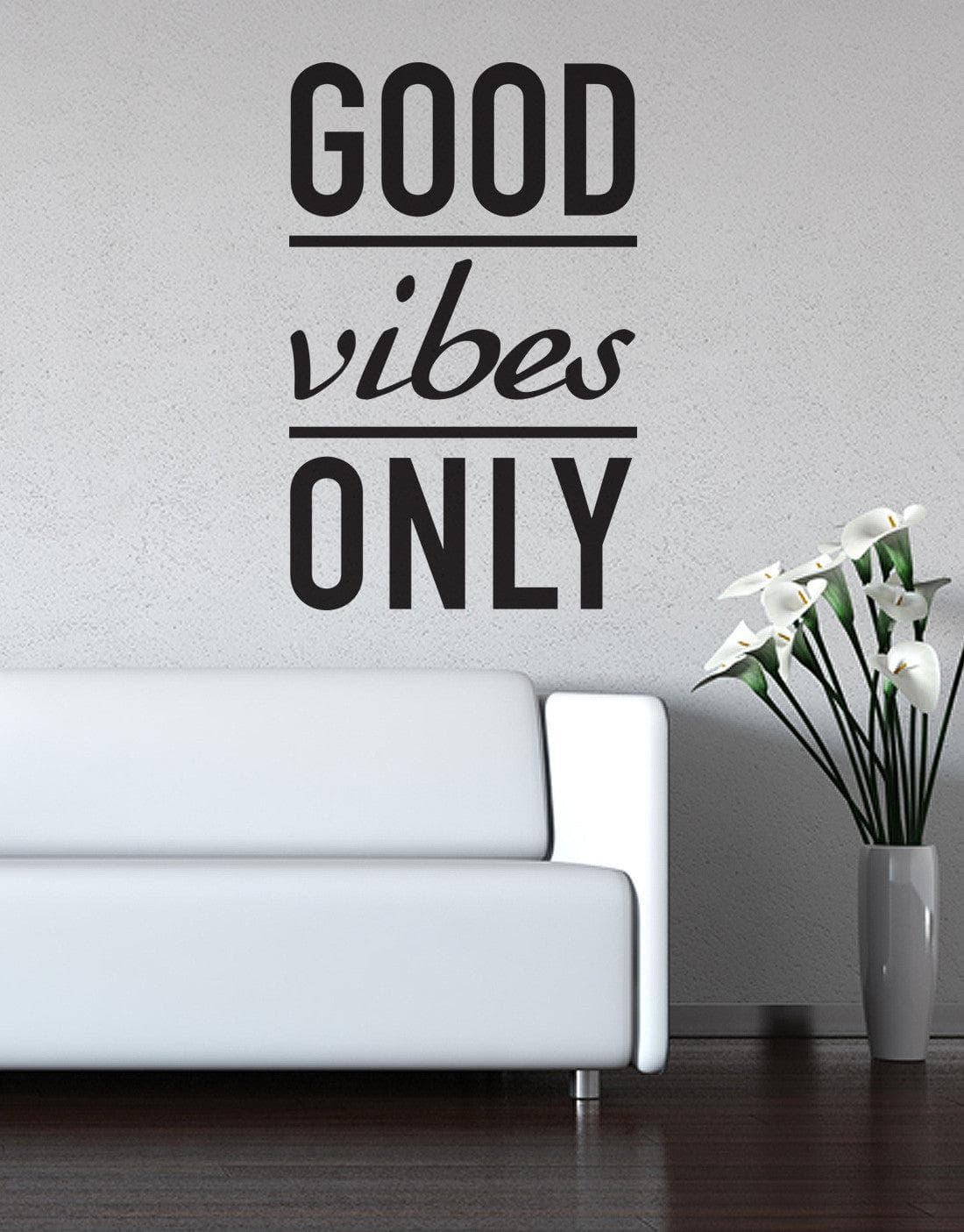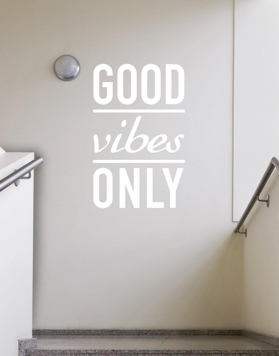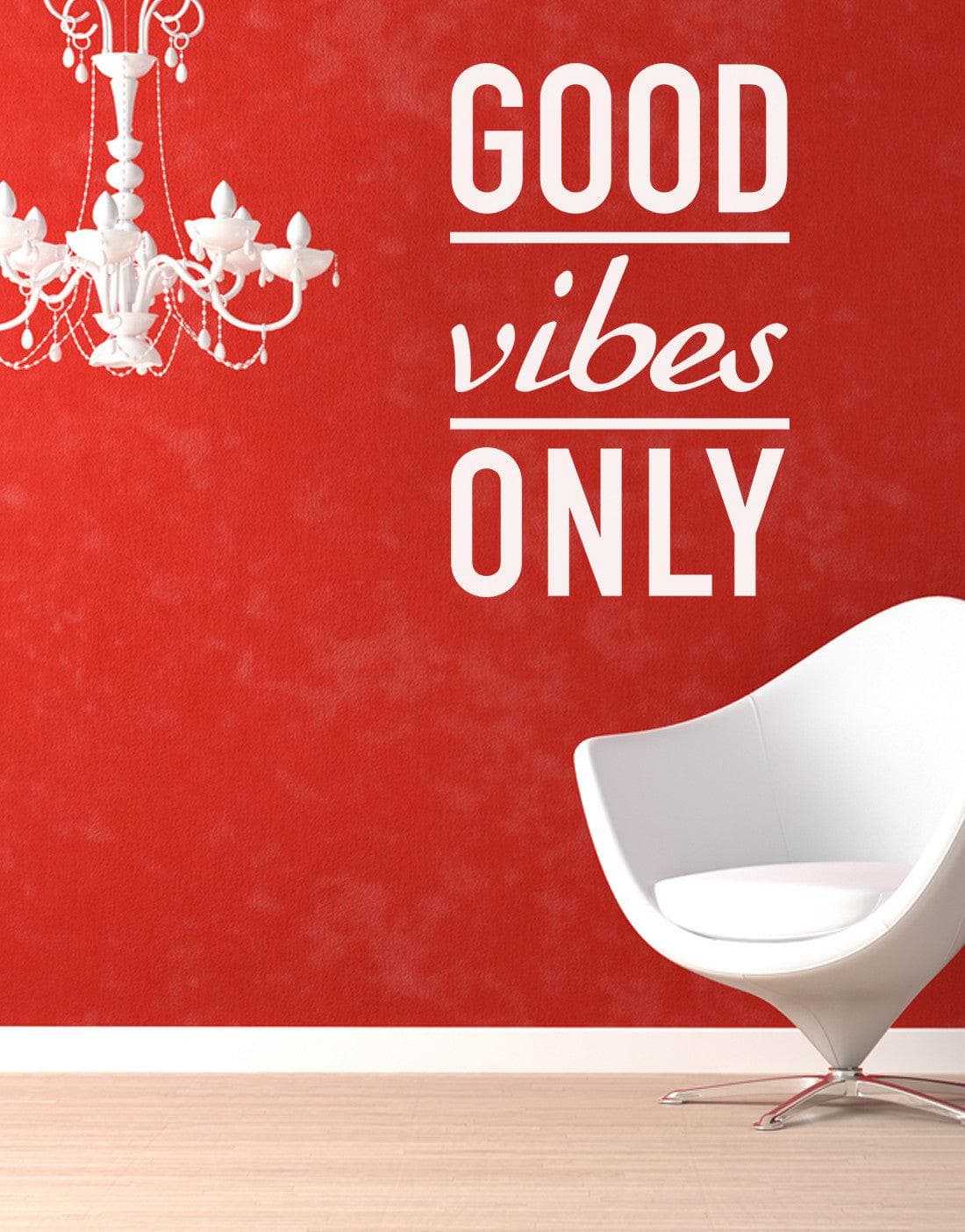 - Simply peel and stick this "Good Vibes Only" wall sticker. No glue or chemicals needed, all decals come with instructions.